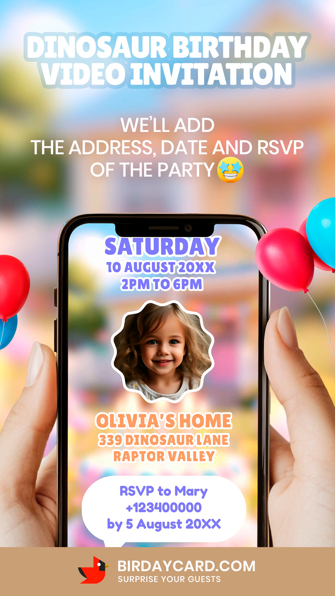 Dinosaur - girl - Animated Birthday Video Invitation